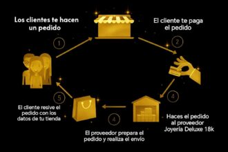 Cuando tu cliente compra, el proveedor prepara y envía el pedido directamente, y tú ganas la diferencia entre el precio de compra y el de venta.